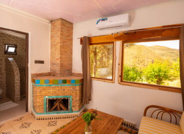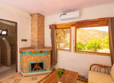 Asta rend hommage à l’art berbère dans une chambre d’hôte unique à Bin El-Ouidane. Inspirée des tapis traditionnels tissés par les femmes locales, cette chambre de Dar l’Eau Vive associe motifs ancestraux et élégance moderne. Chaque détail célèbre le savoir-faire artisanal berbère.
